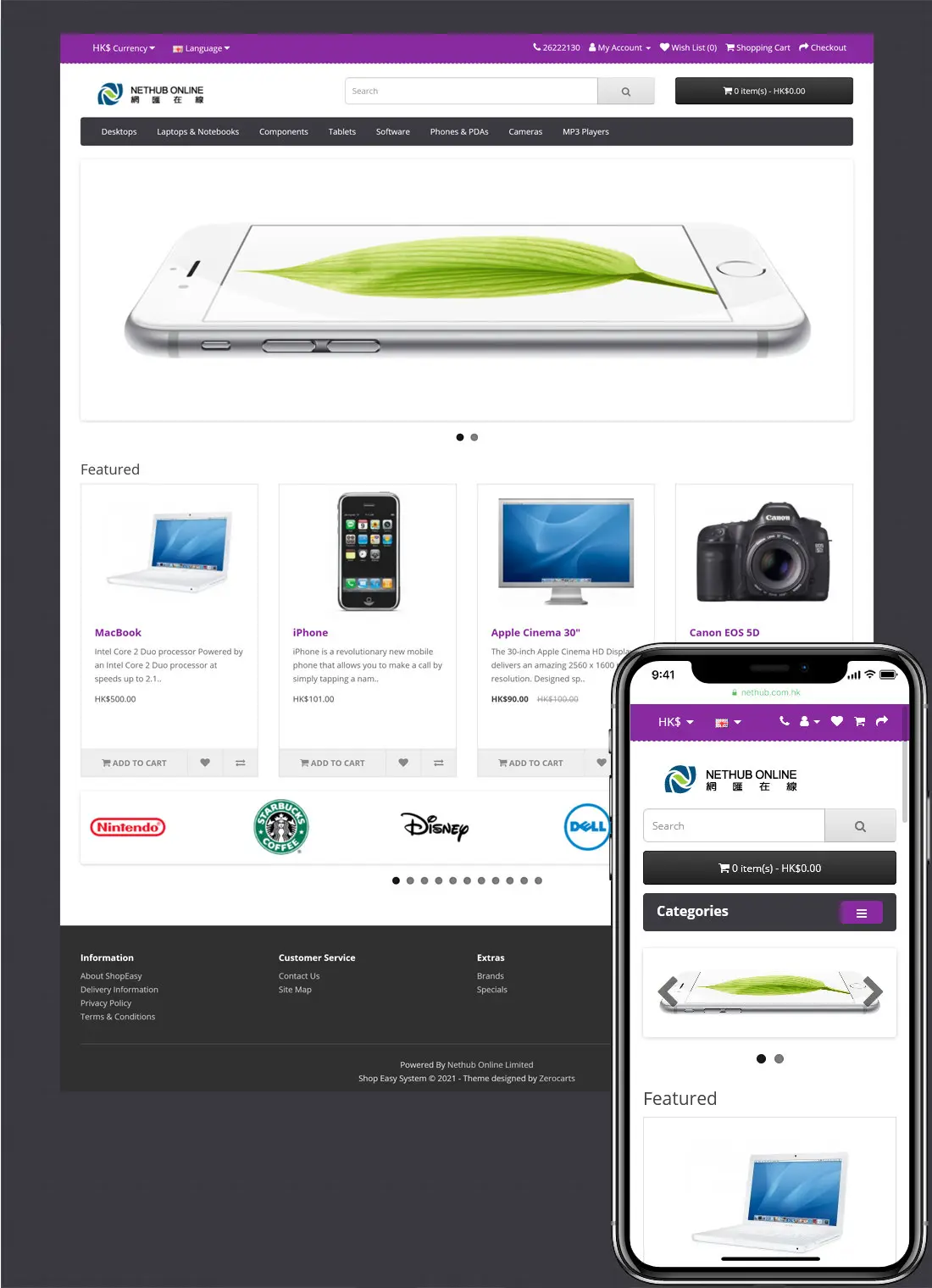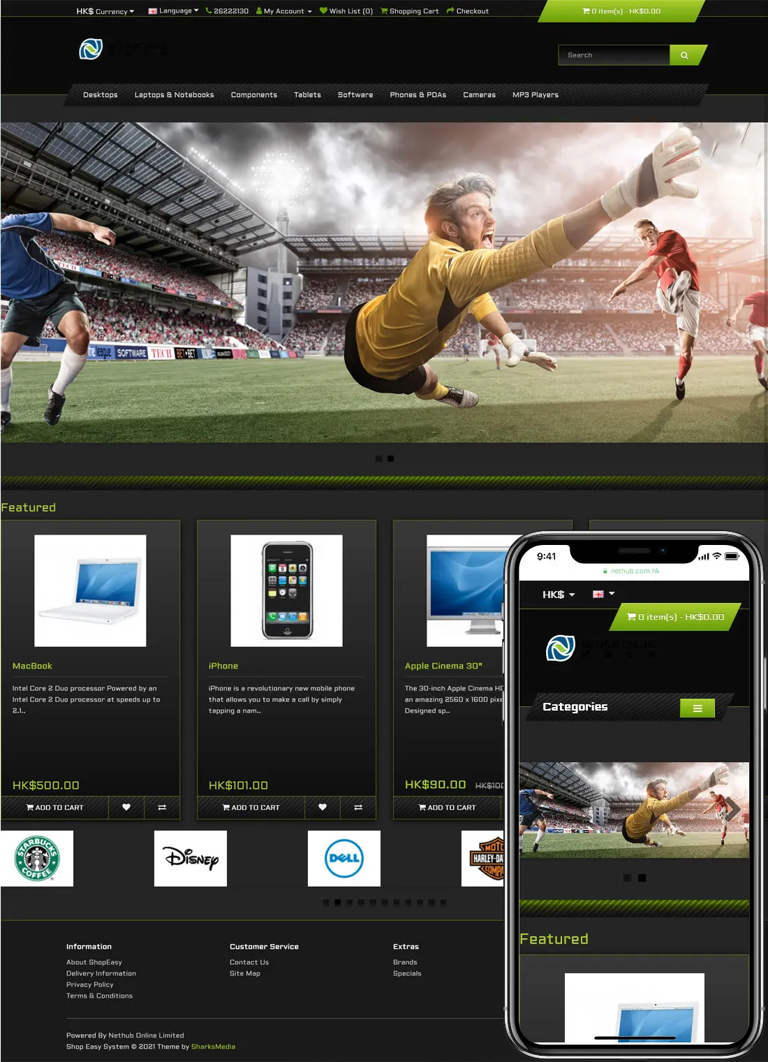 **Since this software requires the use of the MySQL database, so customers have to choose Linux web hosting plan B or above. This software is pre-designed template system, if you need a website with more functions, to modify design layout or to modify system function, please contact our customer representative at (852) 26222130 or email to enquiry@nethub.com.hk.